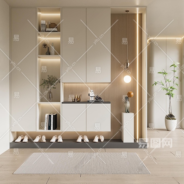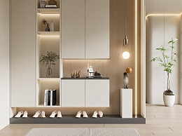 现代奶油风玄关3D模型下载