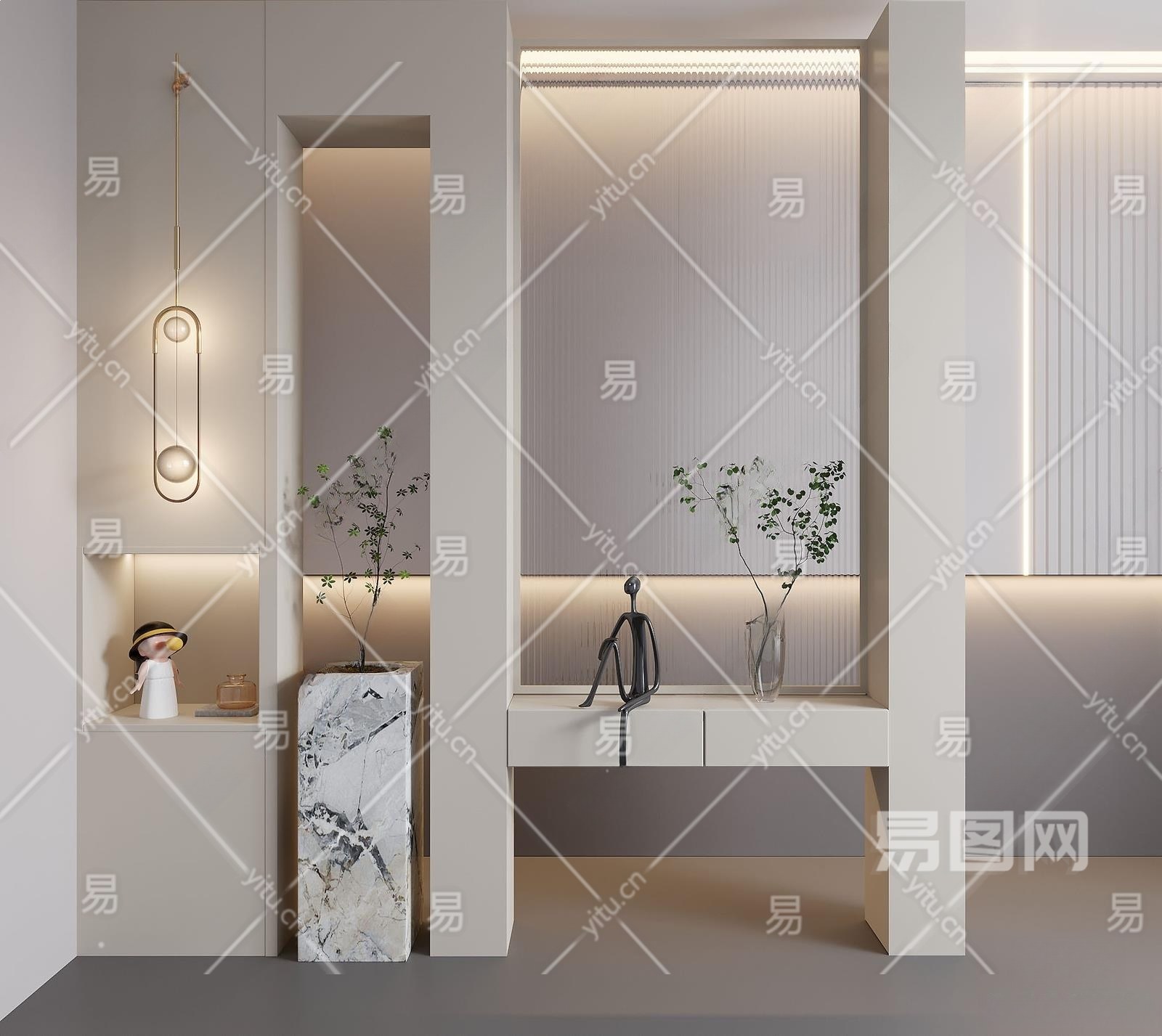 现代玄关3D模型下载