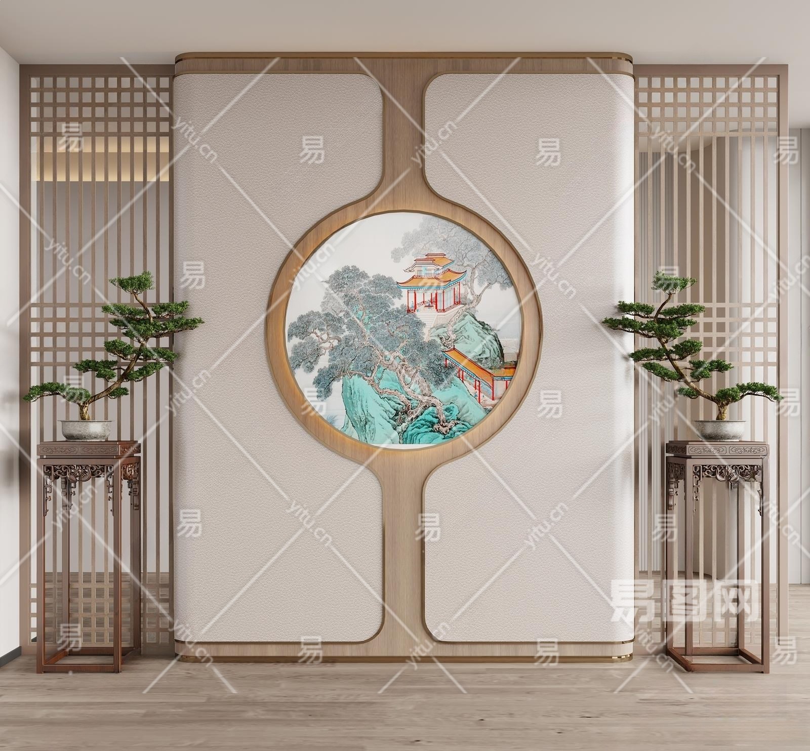 新中式玄关3D模型下载