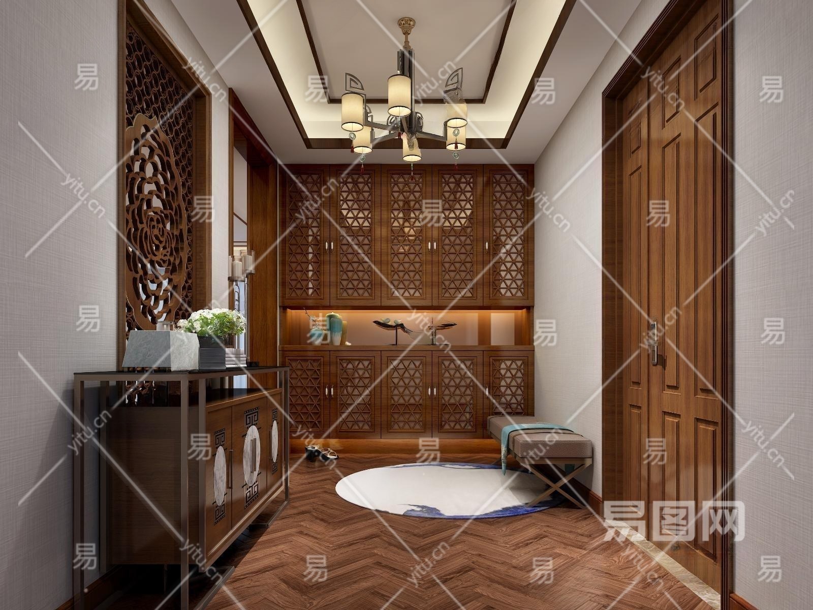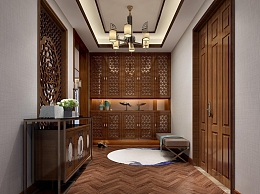 新中式门厅玄关效果图3D模型下载