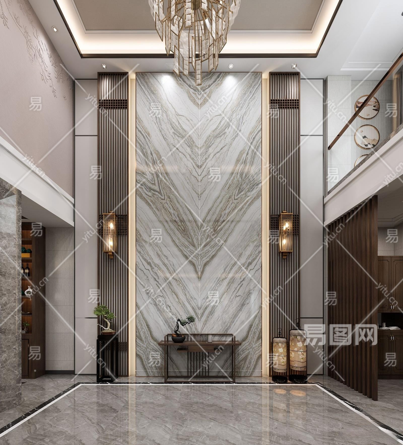 新中式玄关3D模型下载