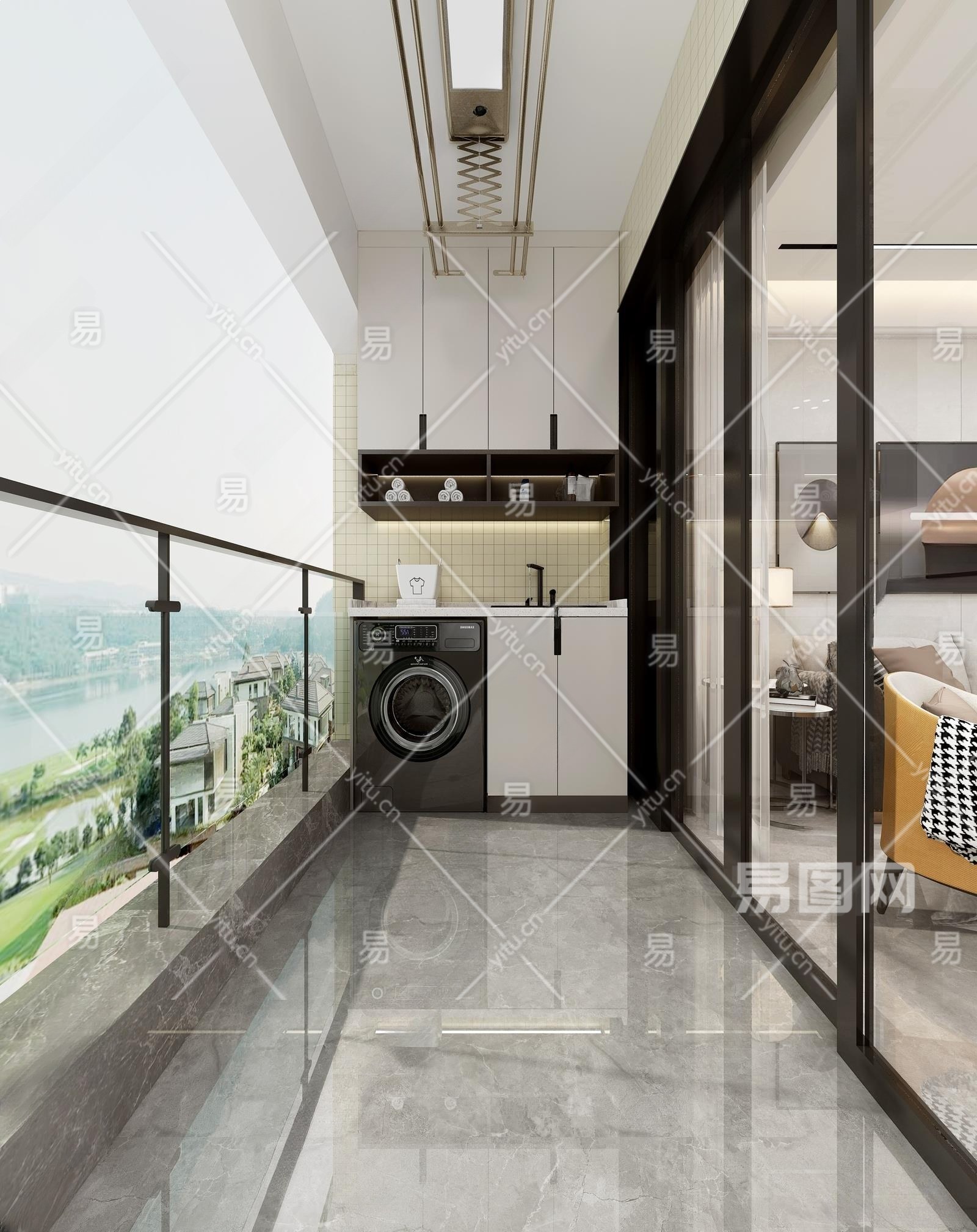 现代家居阳台3D模型下载