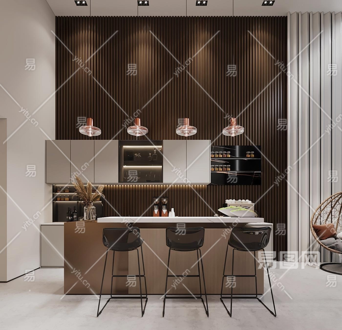 现代水吧台3D模型下载