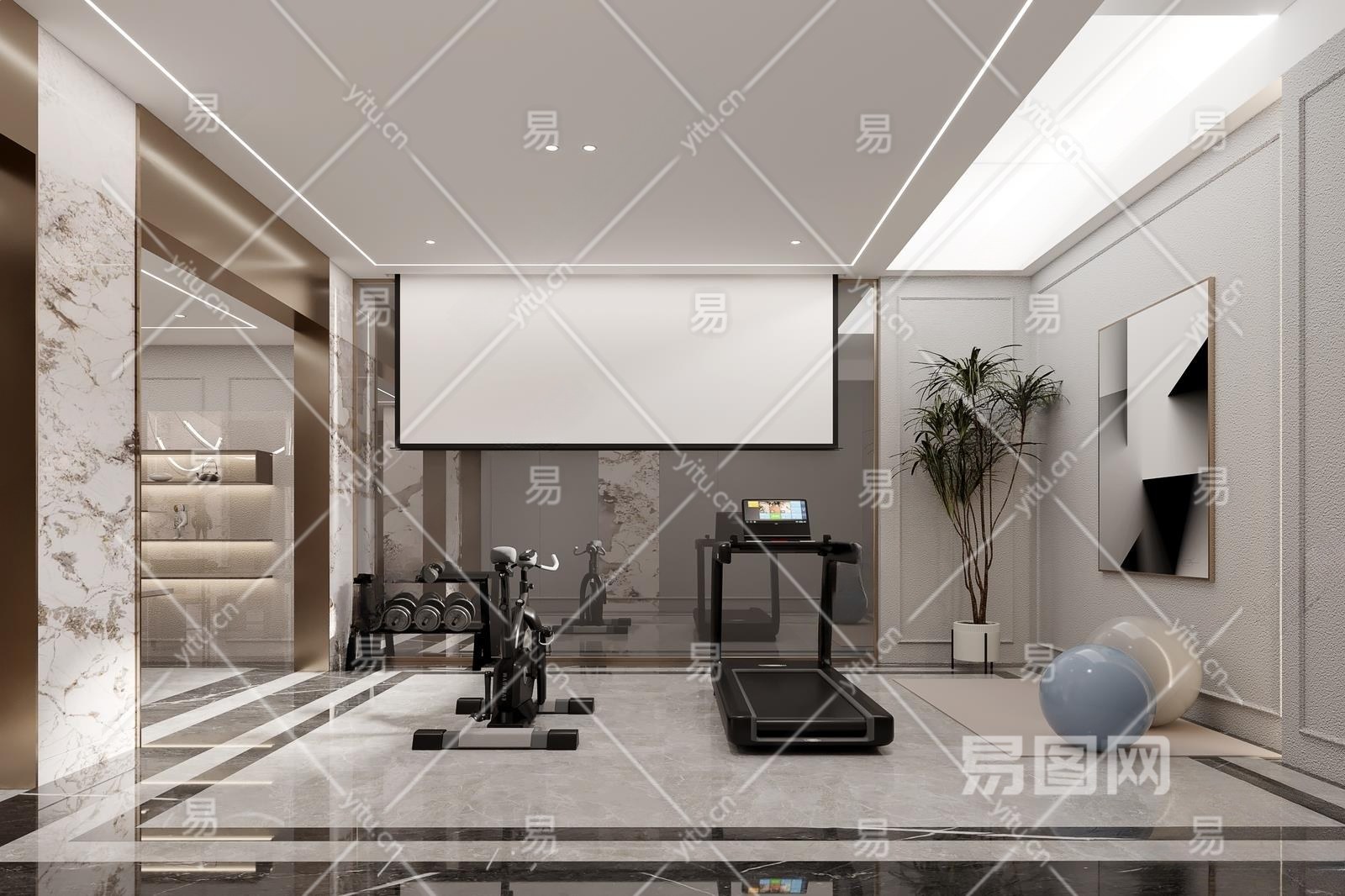 现代地下室健身房3D模型下载