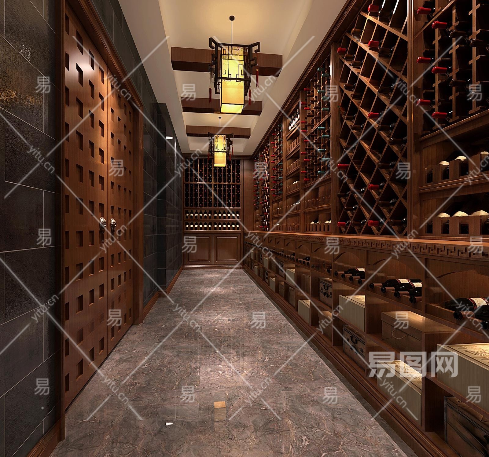 中式品酒室酒窖3D模型下载