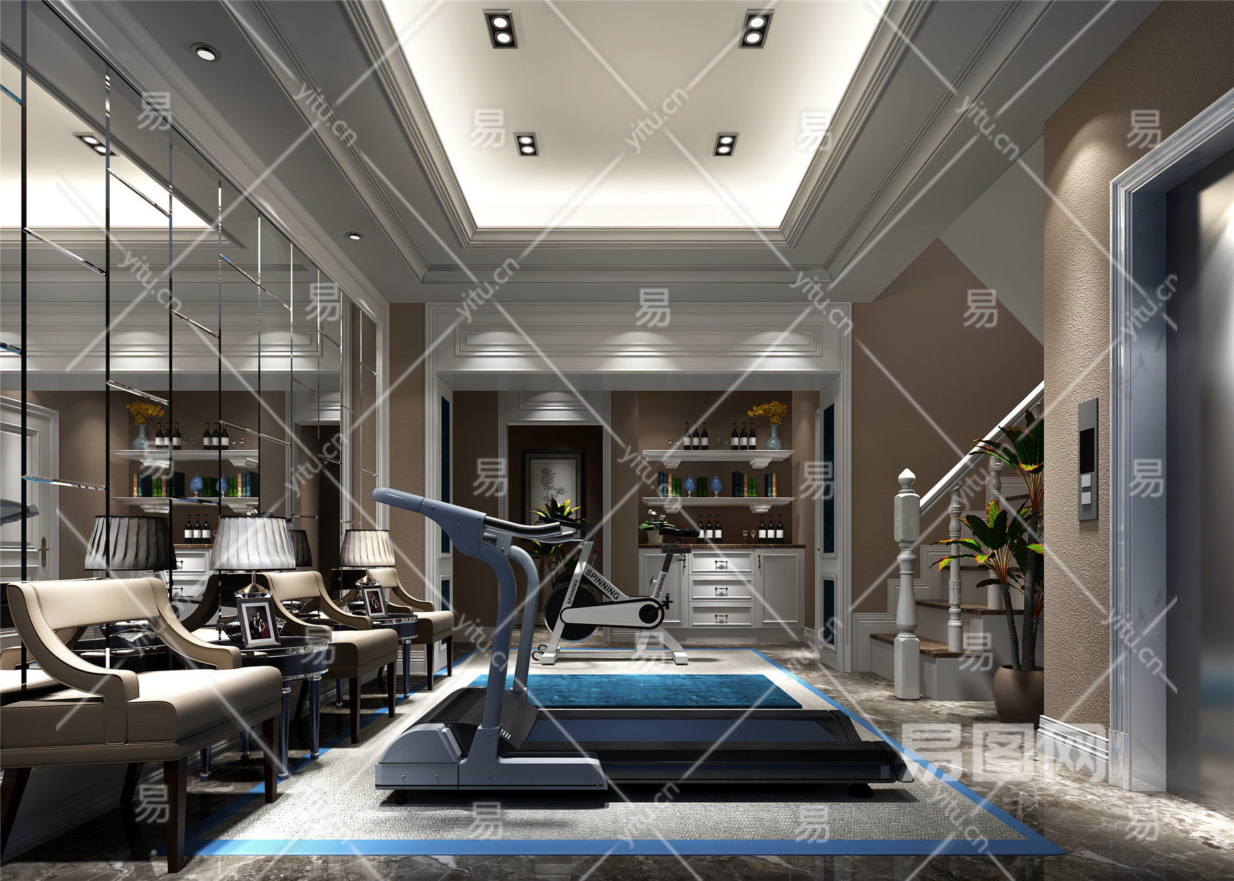 简欧 新古典健身房 健身器材 休息沙发 瑜伽室