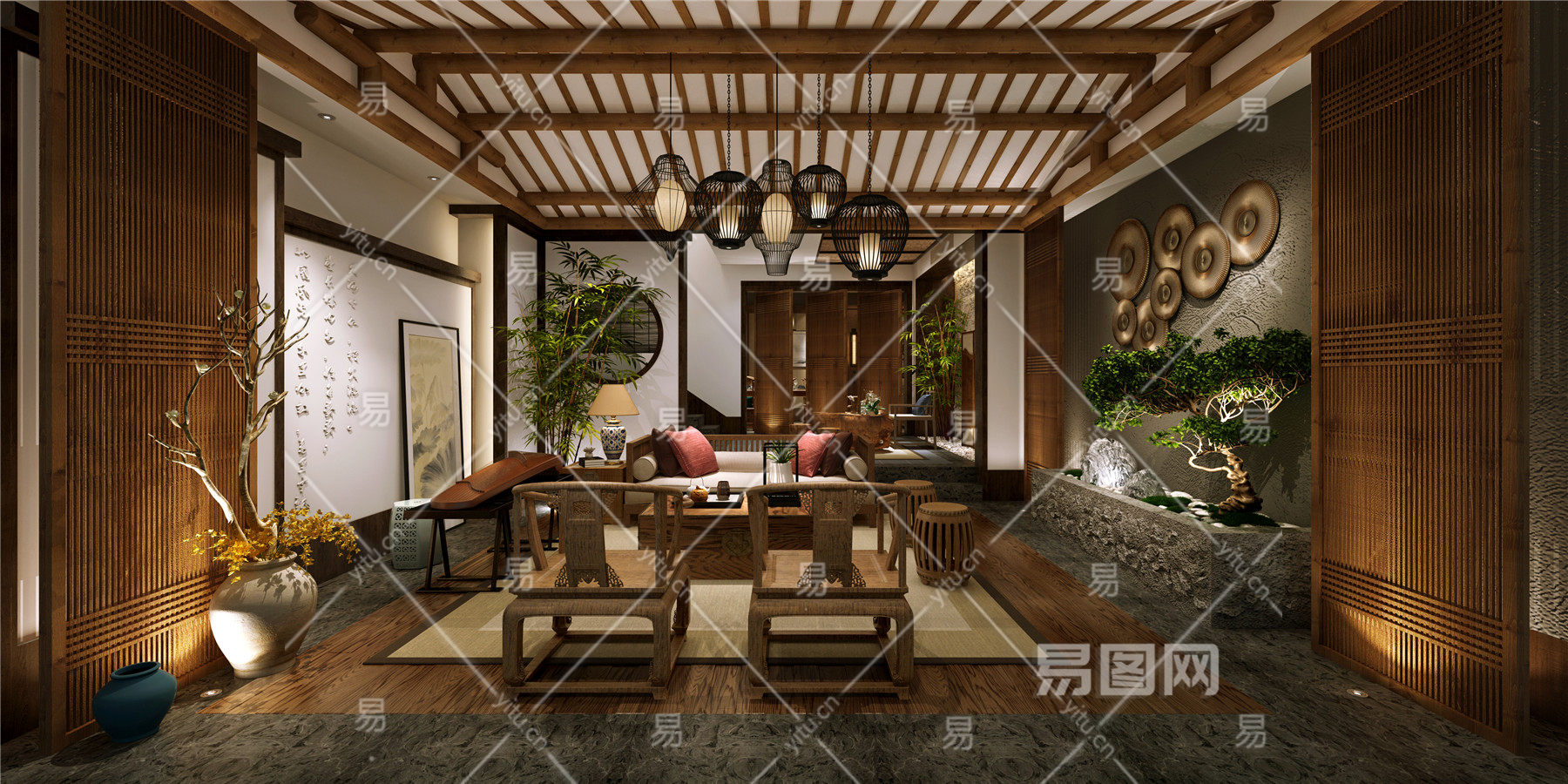 当前的位置:首页 > 3D模型 > 家装空间 > 娱乐室 > 新中式公装大厅茶室休闲区