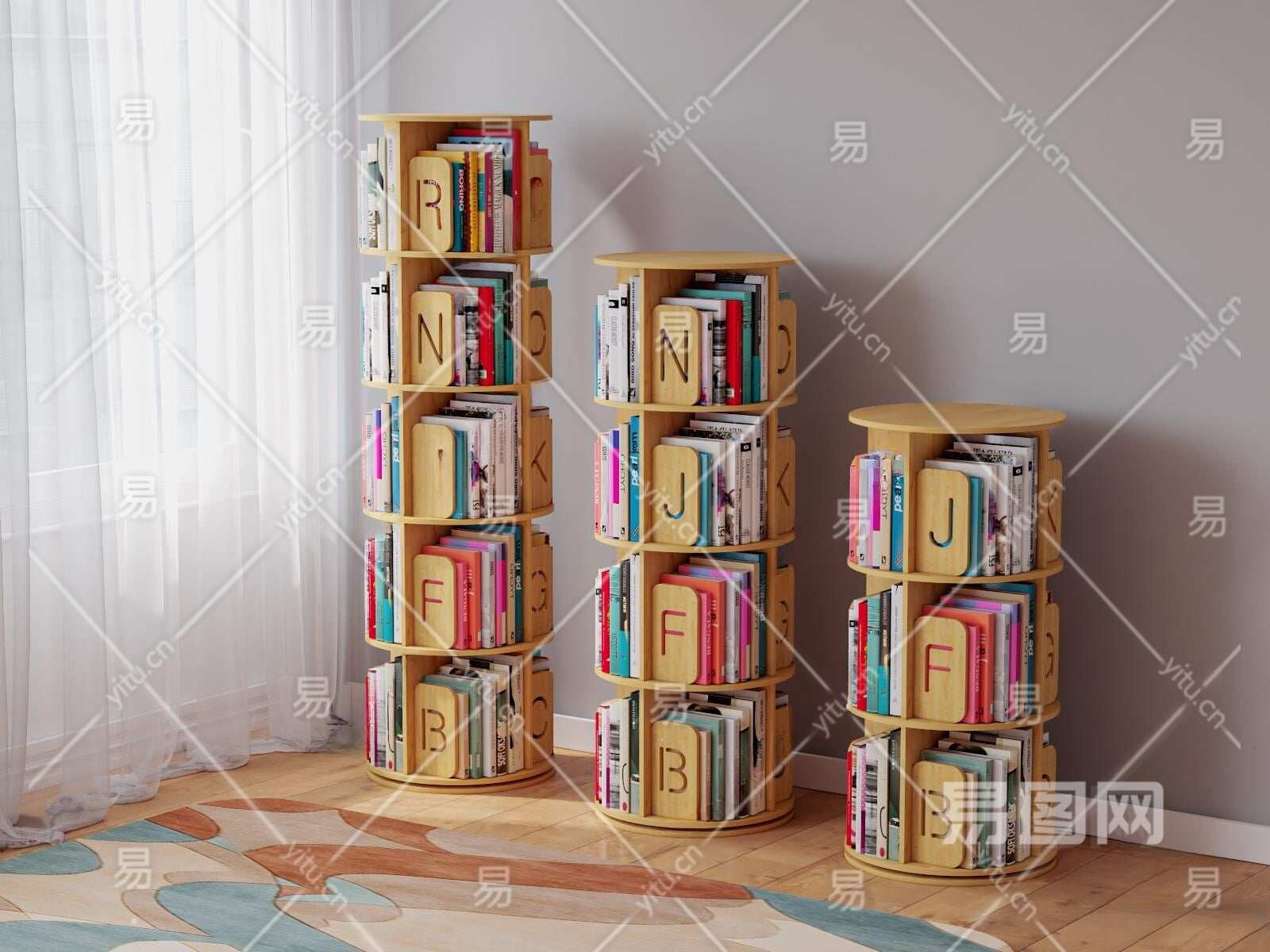 北欧旋转书架3D模型下载