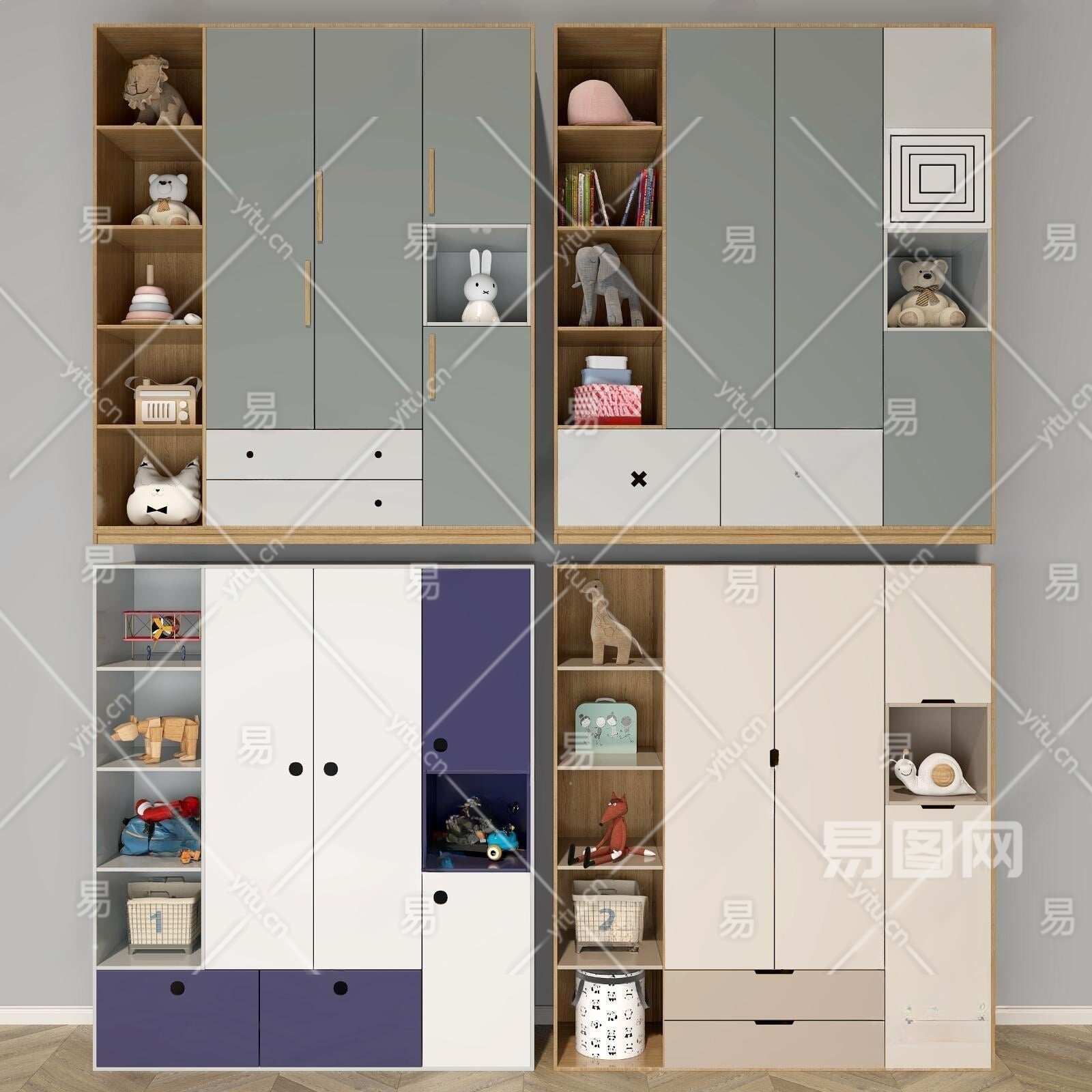 现代儿童书柜3D模型下载