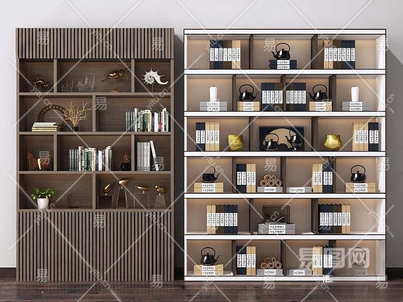 新中式书柜组合3D模型下载