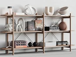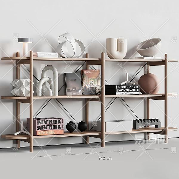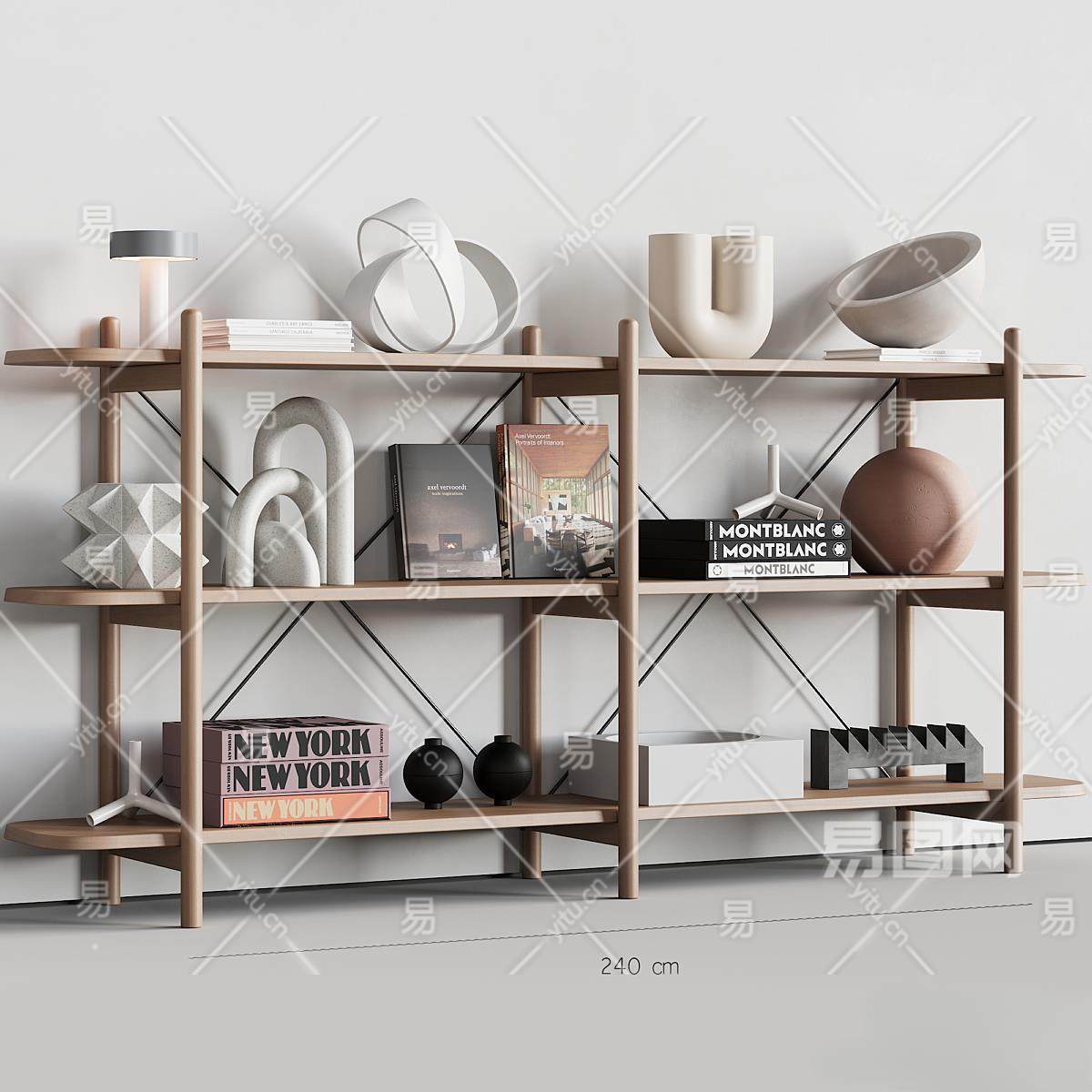 现代置物架 装饰品 书本 雕塑 台灯 陈设品