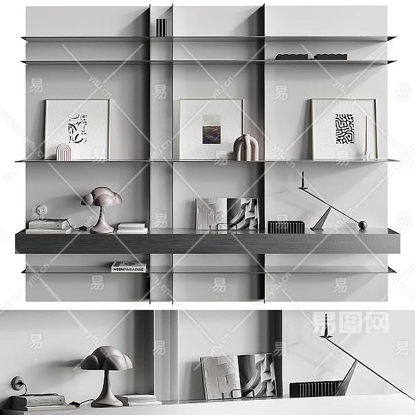 现代置物架 陈设品 雕塑 书籍摆件