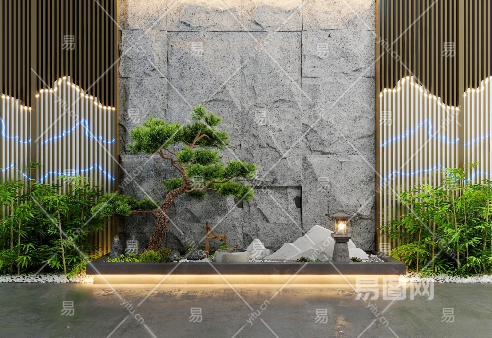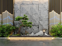 新中式庭院景观3D模型下载