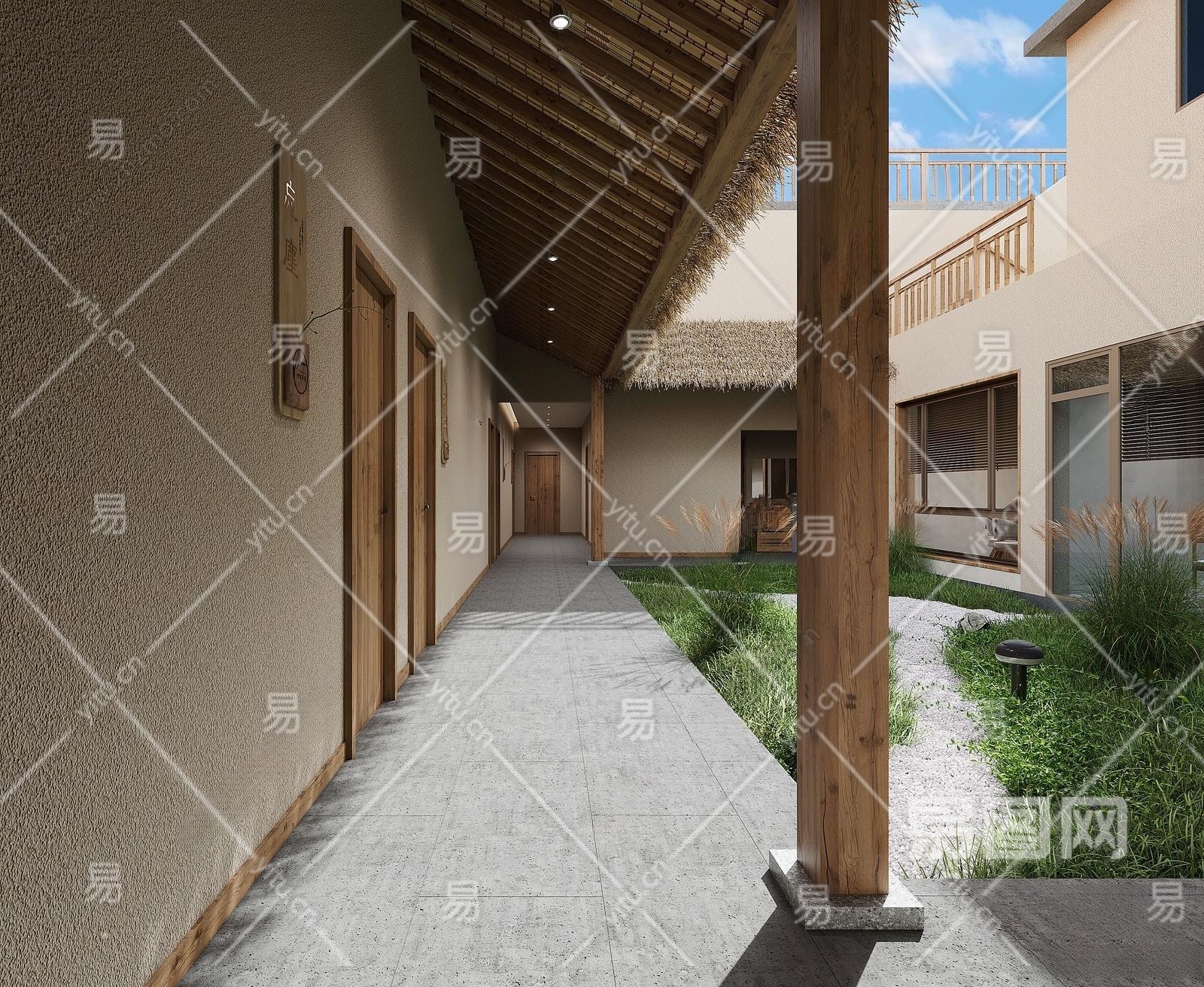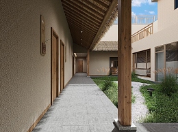现代民宿庭院景观3D模型下载