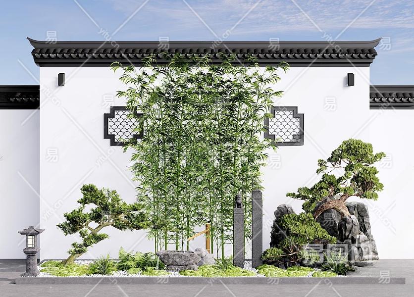 新中式庭院景观小品3D模型下载