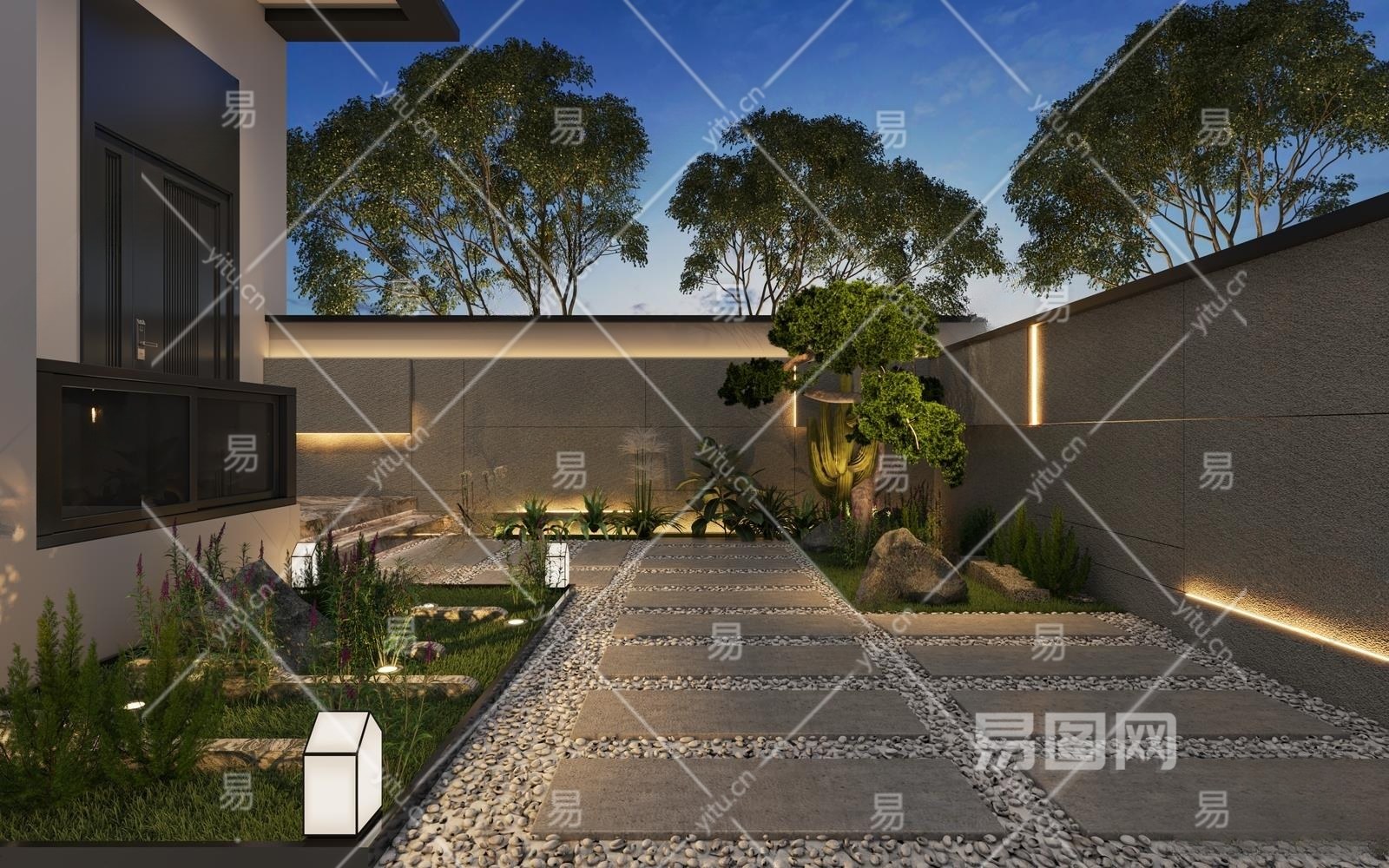 现代庭院景观3D模型下载