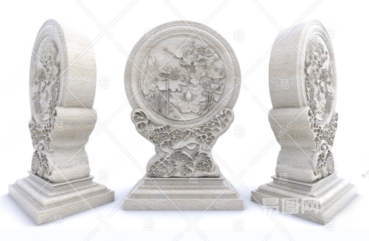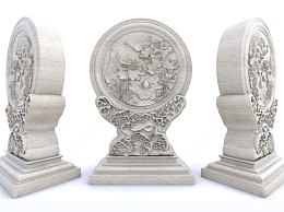 新中式石材雕塑3D模型下载