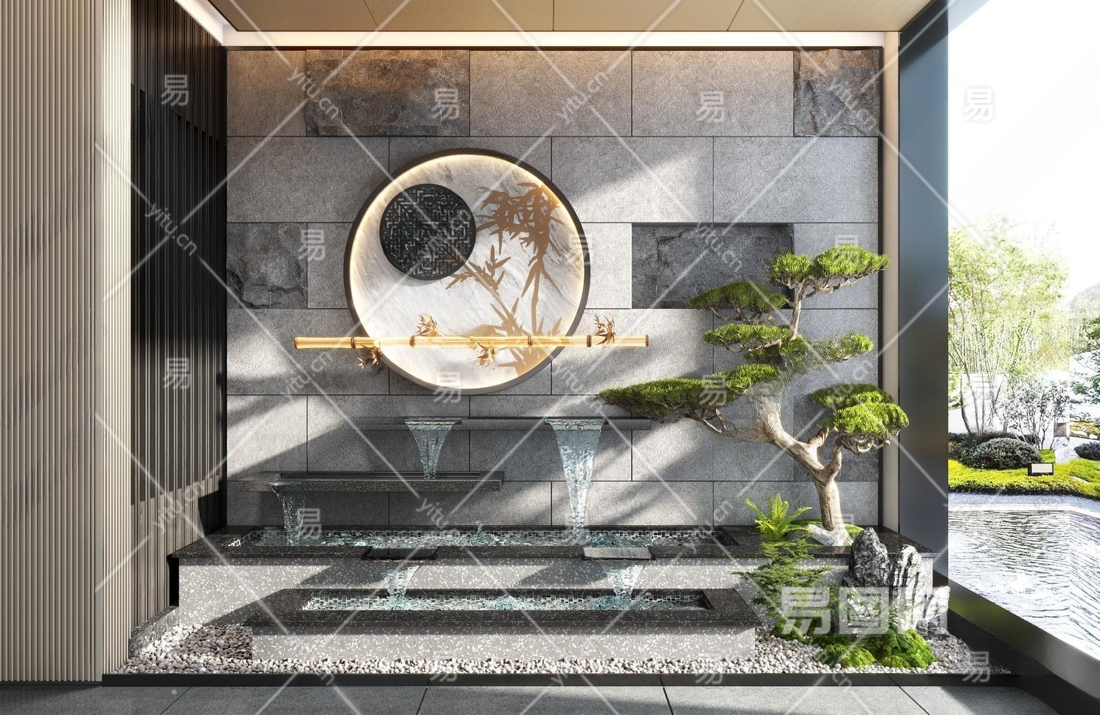 新中式假山水景3D模型下载
