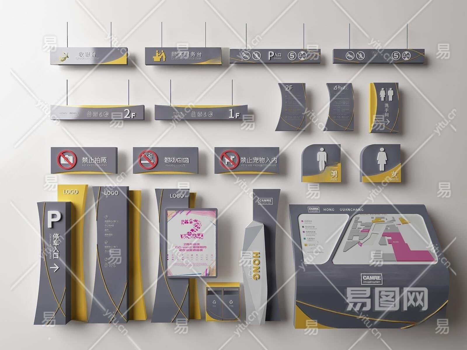 现代商场商业指示牌3D模型下载