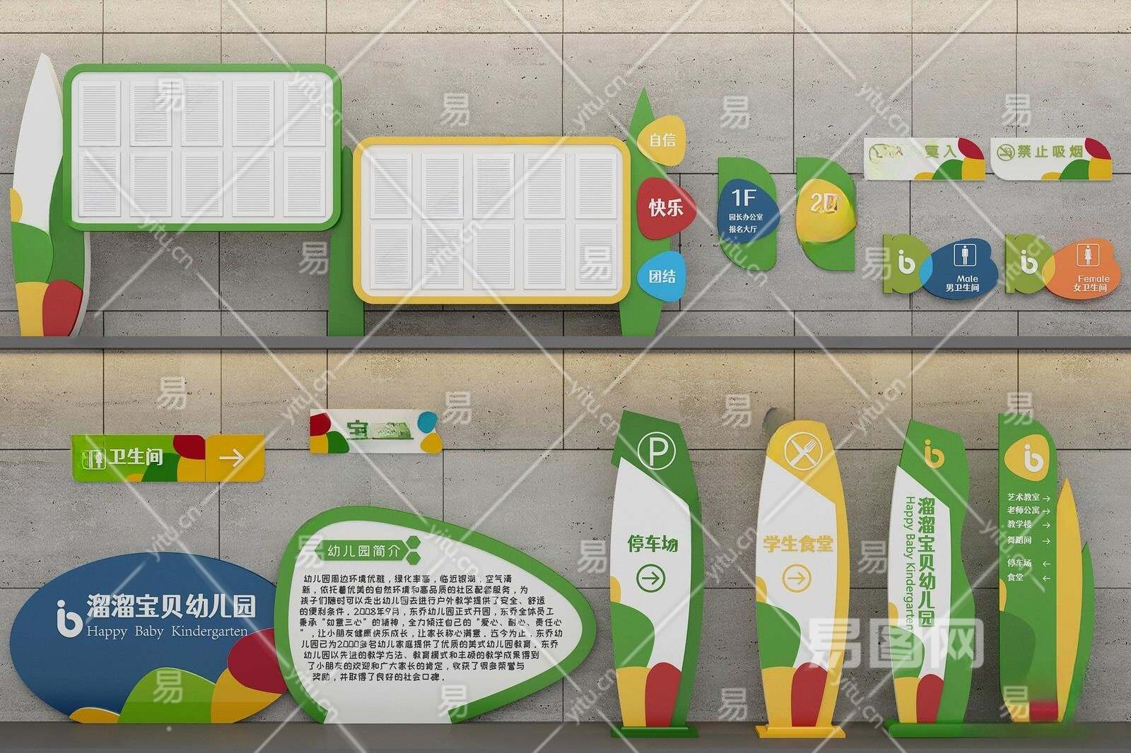 现代幼儿园宣传栏指示牌3D模型下载
