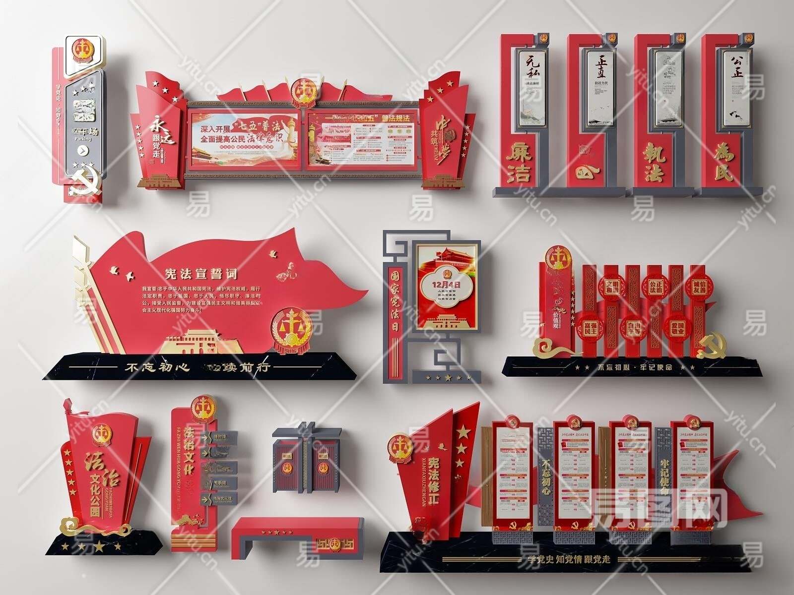 新中式党建法治指示牌3D模型下载