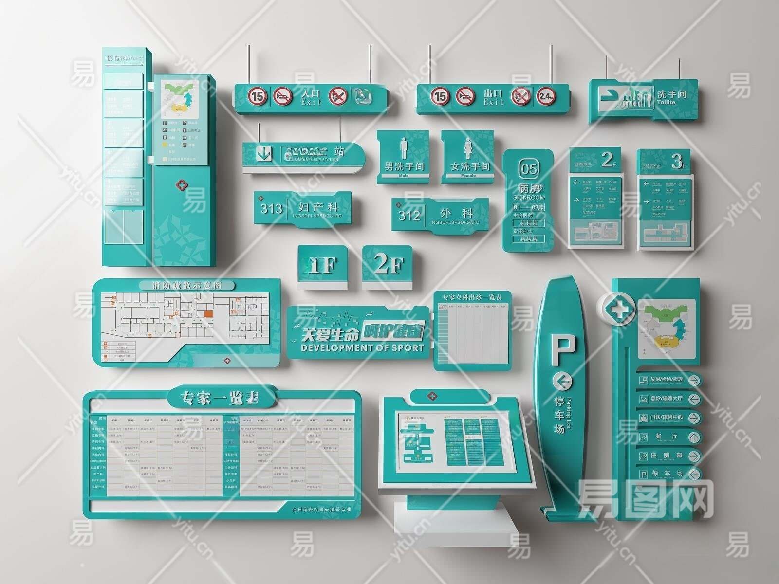 现代医院医疗指示牌3D模型下载