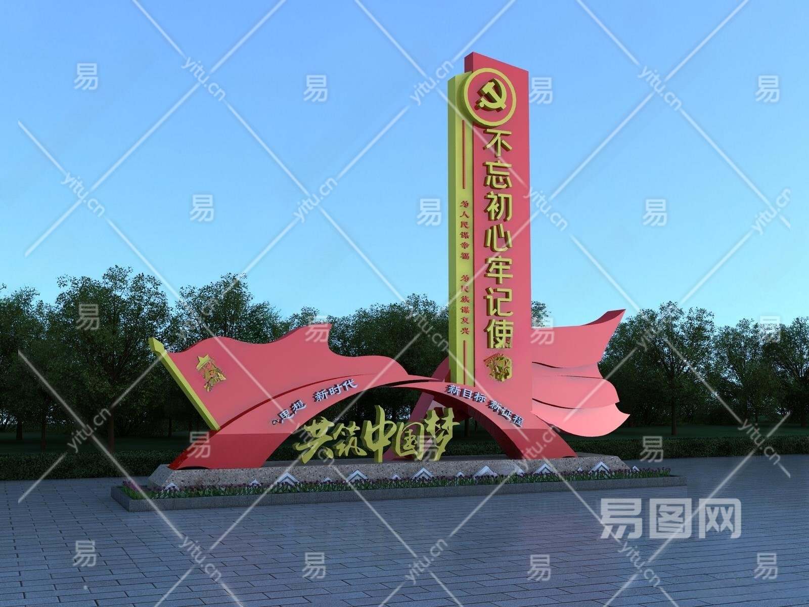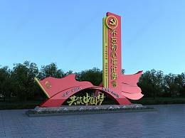 现代红色党建指示牌3D模型下载