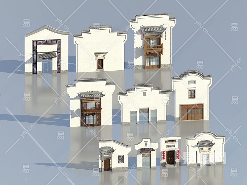 中式徽派大门3D模型下载