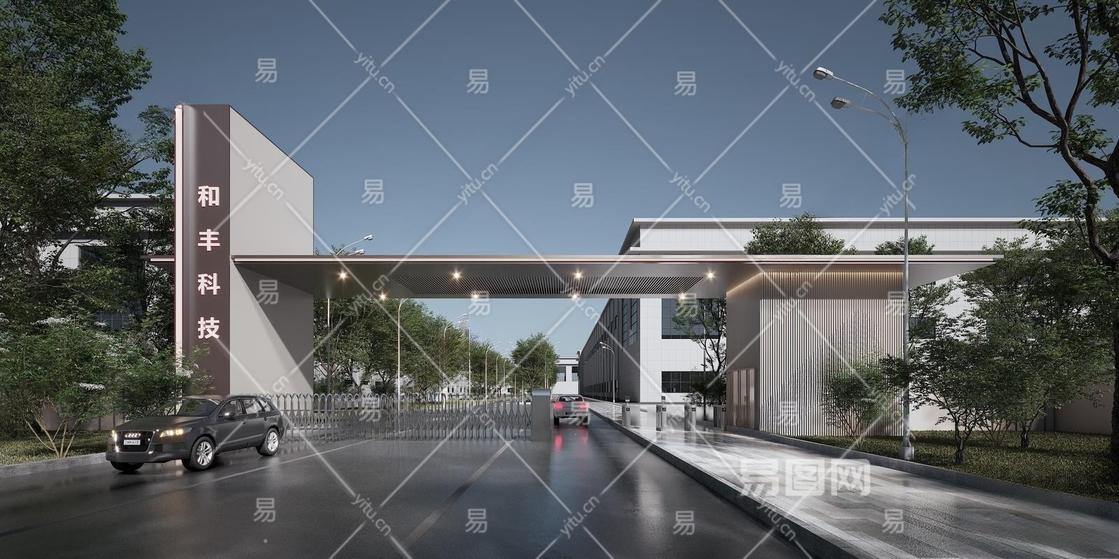 现代工业区入口大门门3D模型下载