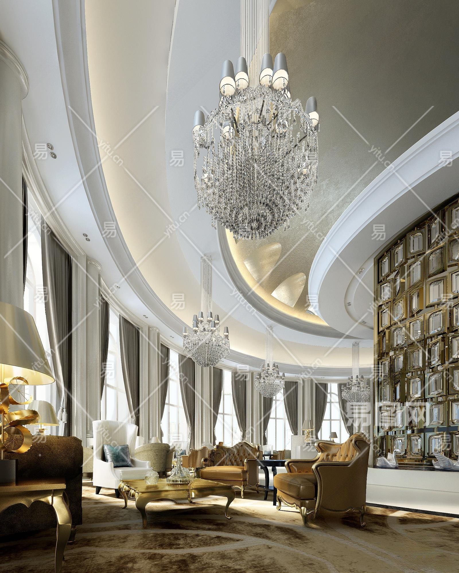 简欧酒店大堂3D模型下载