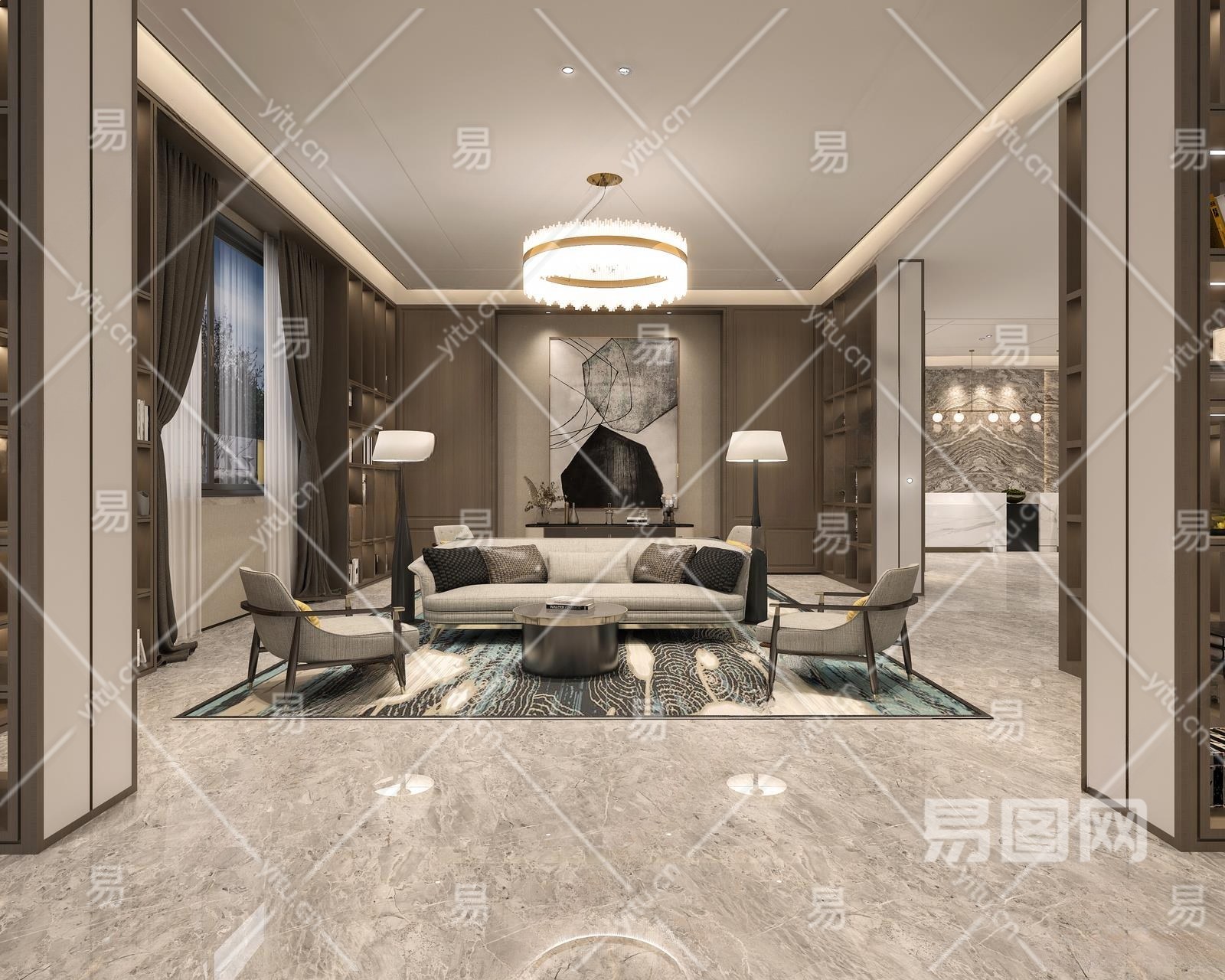 新中式酒店大堂3D模型下载