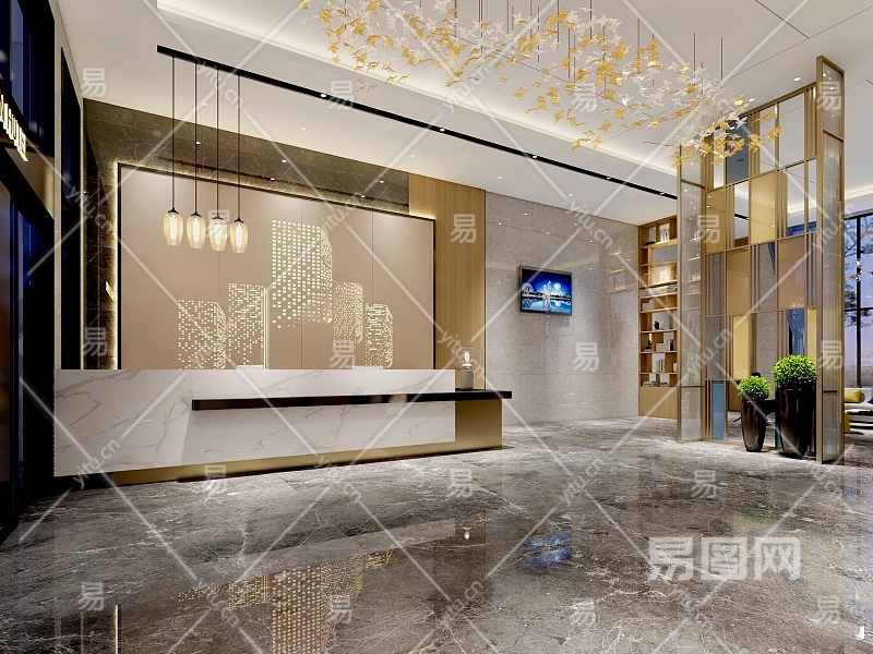 现代酒店大堂3D模型下载