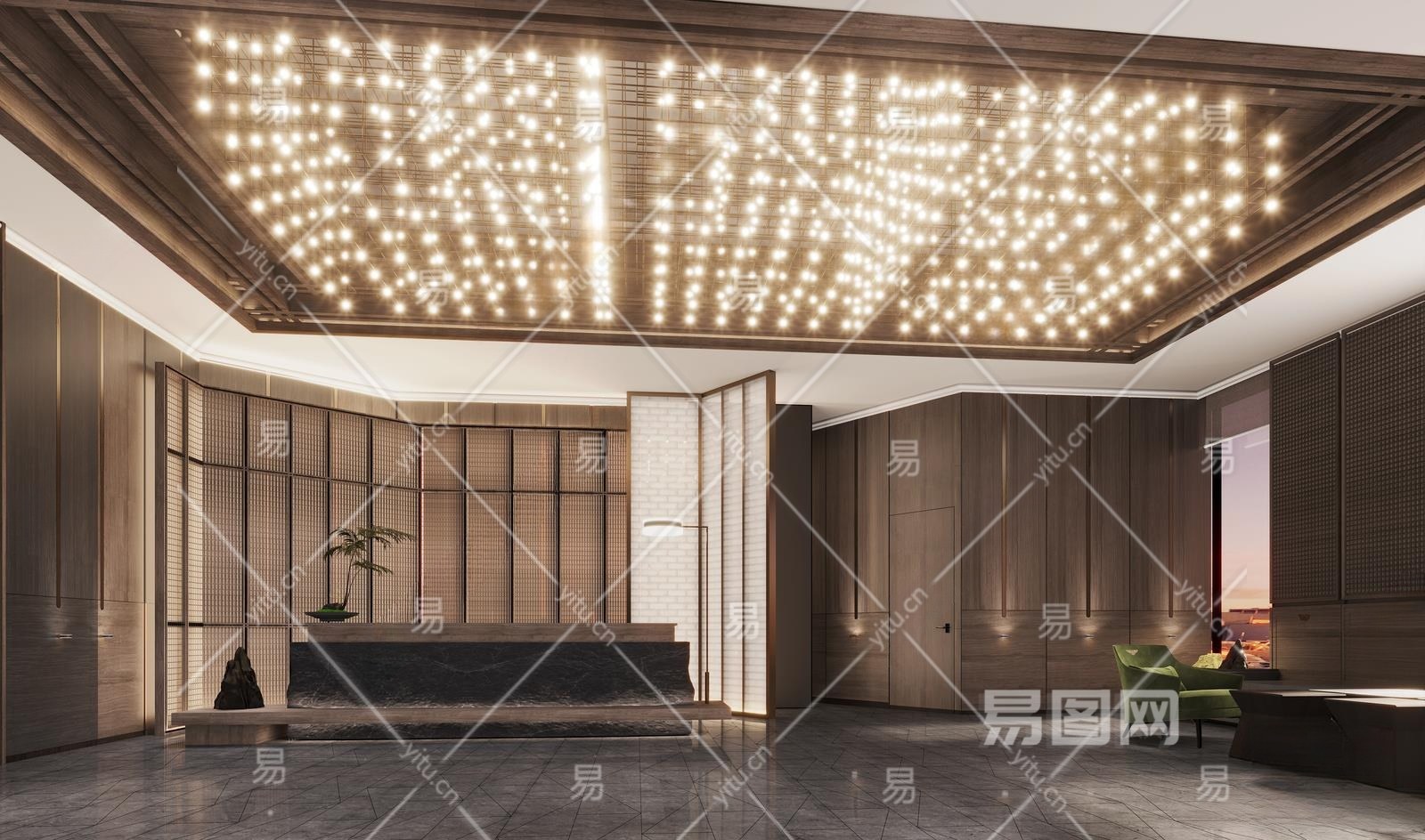 新中式酒店大堂3D模型下载
