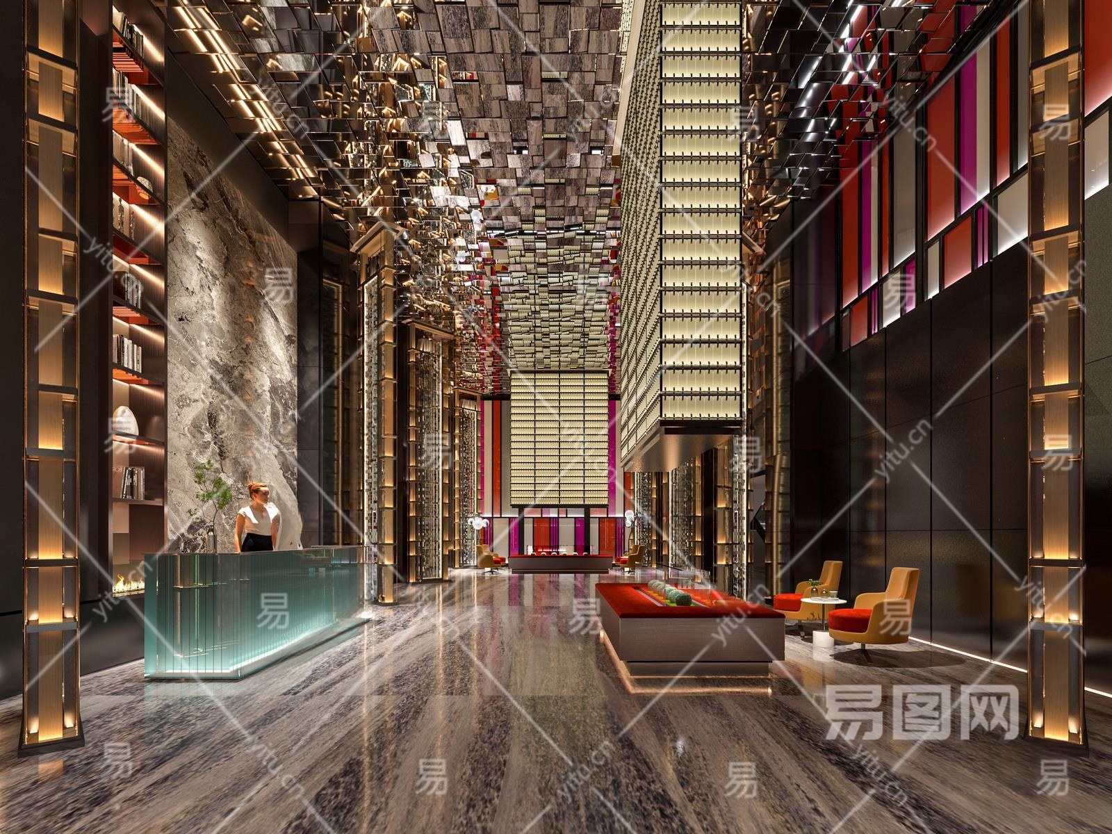 现代酒店大堂3D模型下载