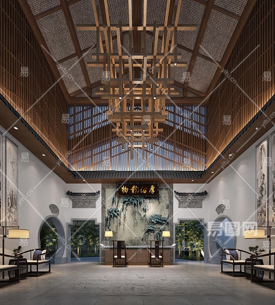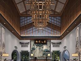 新中式酒店大堂3D模型下载
