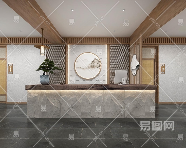 新中式酒店大堂3D模型下载