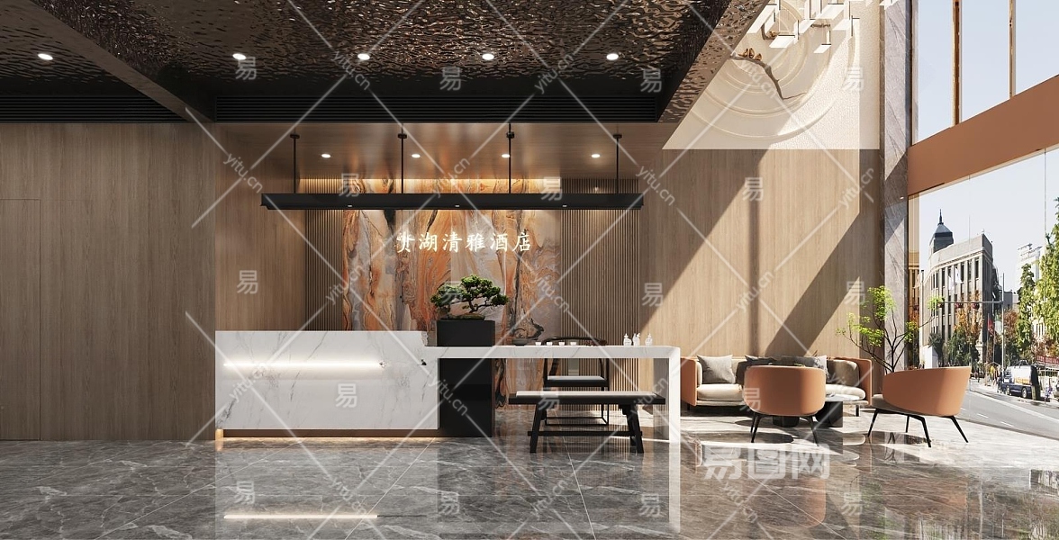 现代酒店大堂3D模型下载
