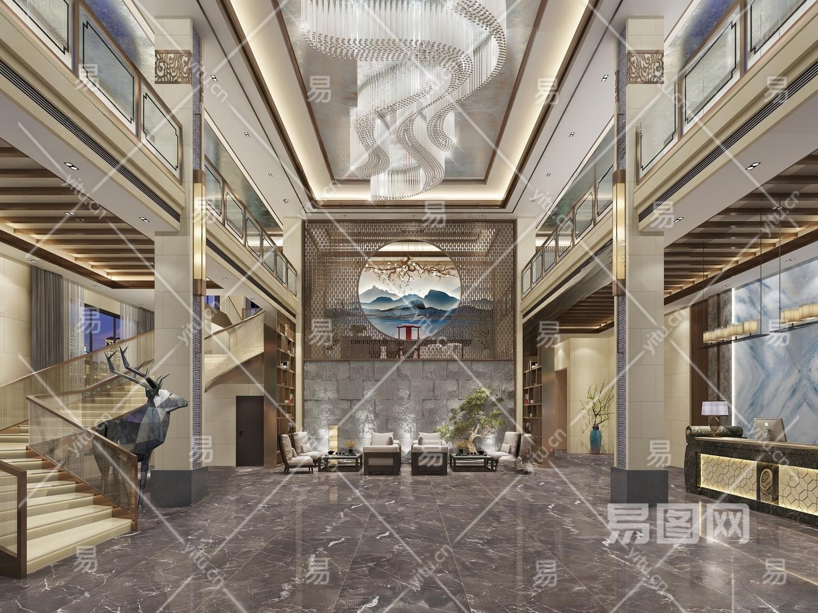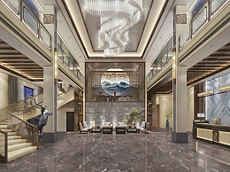 新中式酒店大堂3D模型下载