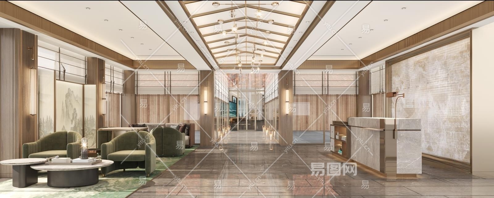 现代酒店大堂3D模型下载