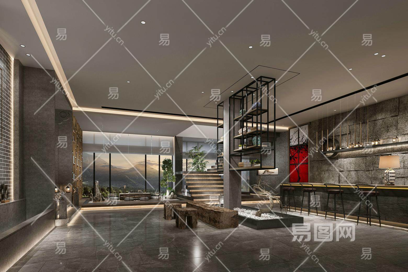 当前的位置:首页 > 3D模型 > 酒店空间 > 大堂 > 新中式酒店大堂 吧台 前台