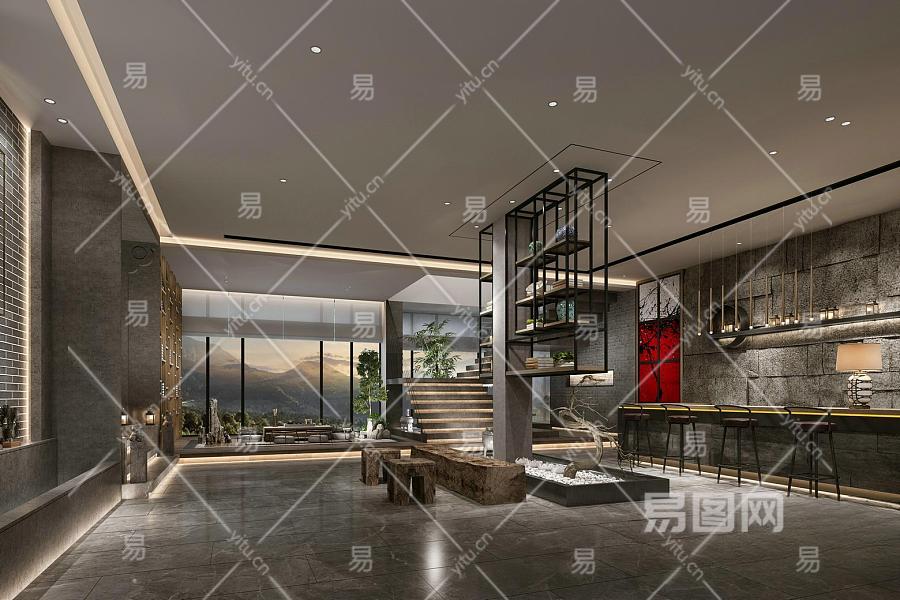 新中式酒店大堂 吧台 前台