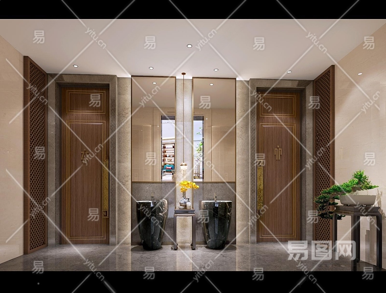 当前的位置:首页 > 3D模型 > 酒店空间 > 酒店卫生间 > 新中式酒店公用卫生间3D模型下载
