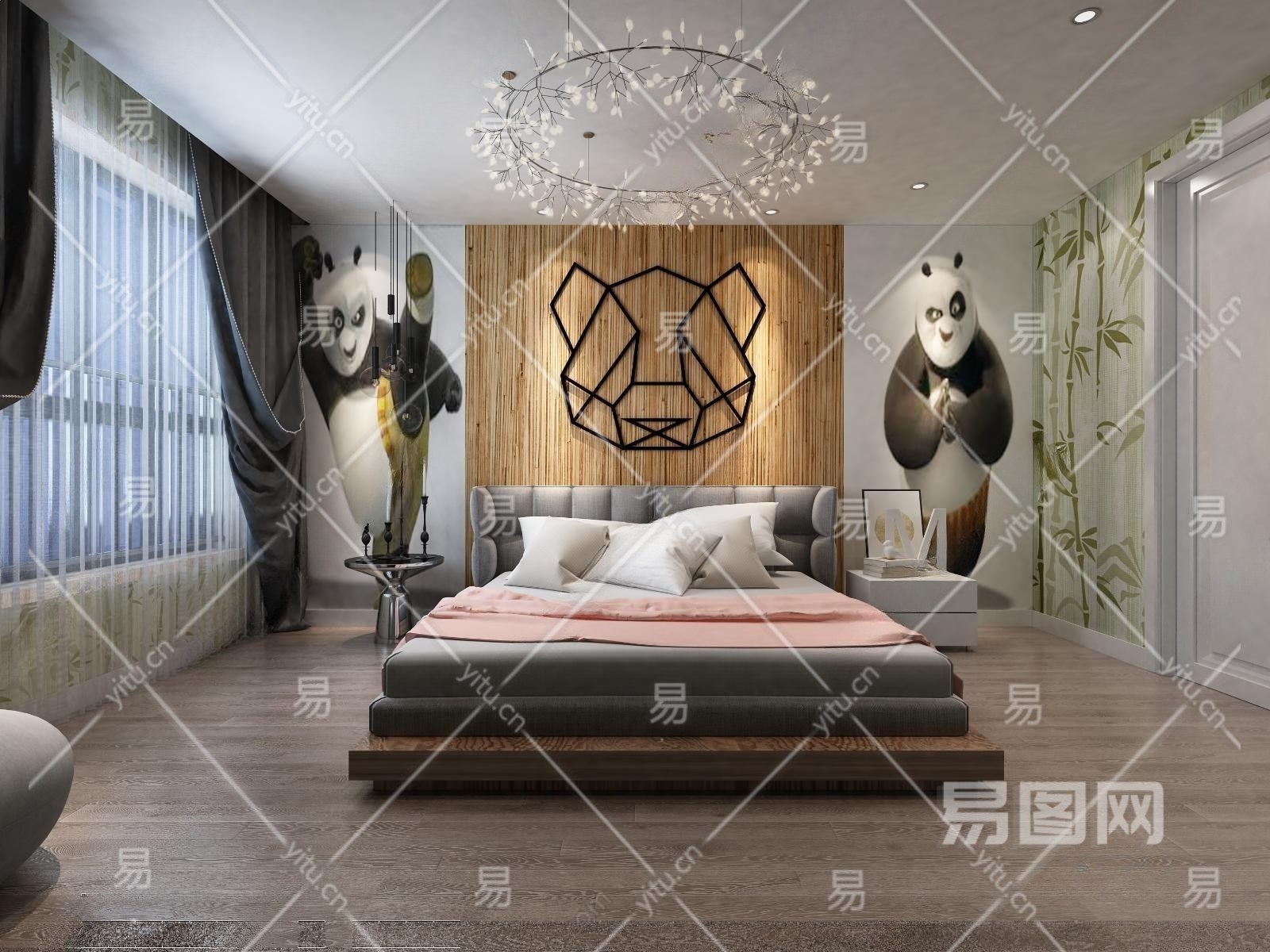 工业风熊猫主题酒店3D模型下载