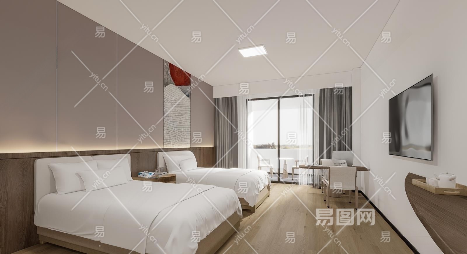 现代酒店客房3D模型下载