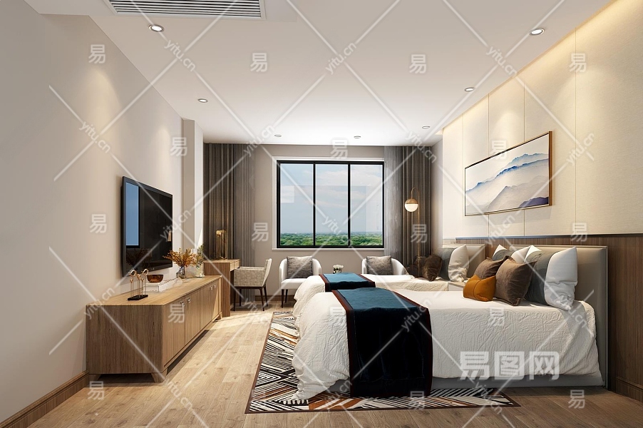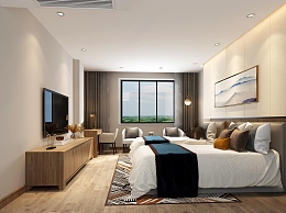 新中式酒店双人房3D模型下载