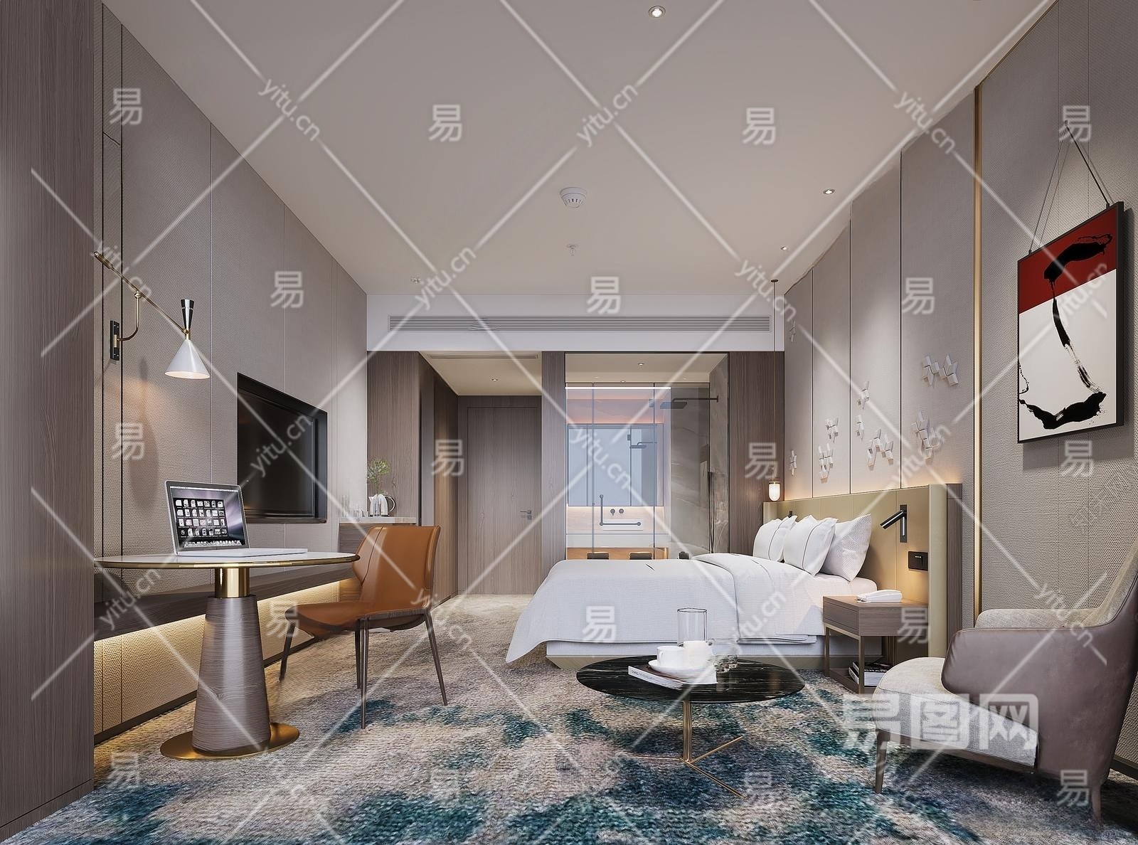 现代酒店客房3D模型下载