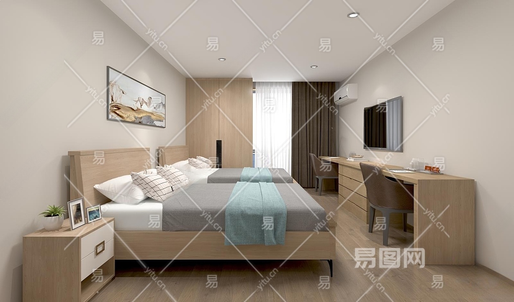 现代酒店客房3D模型下载