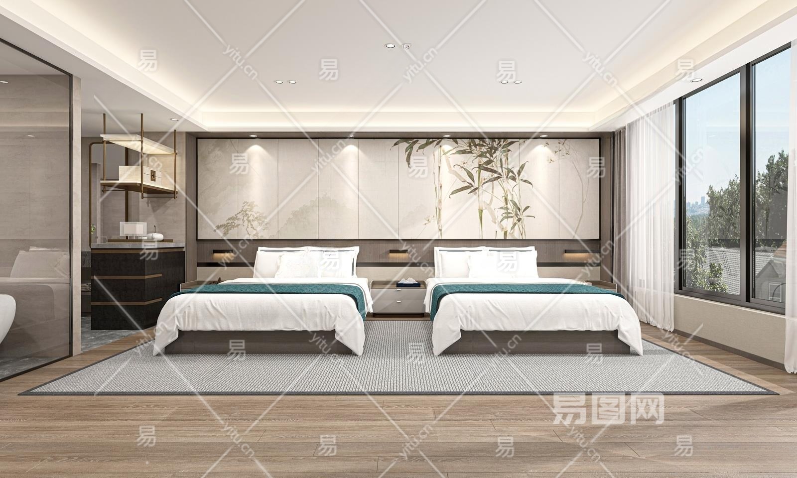 新中式酒店客房3D模型下载