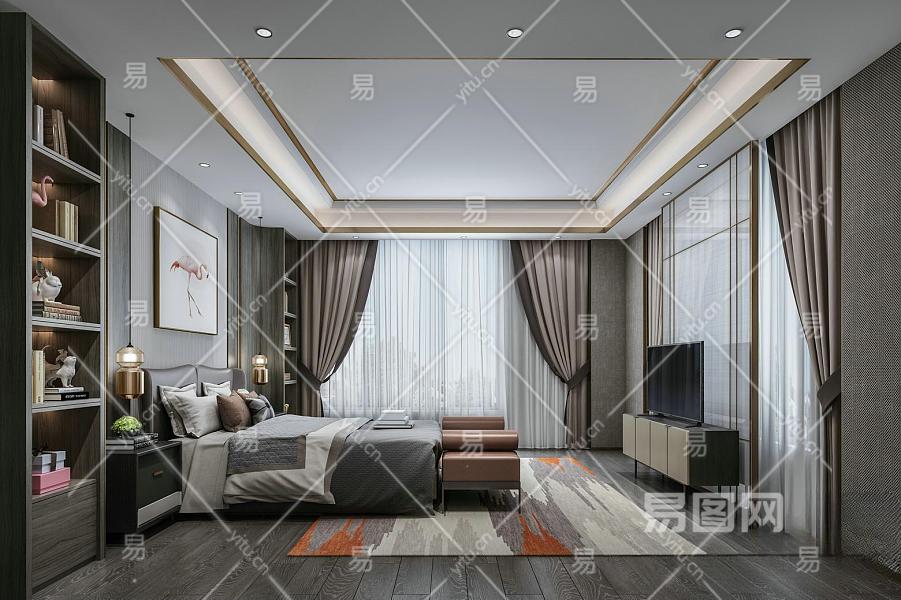 当前的位置:首页 > 3D模型 > 酒店空间 > 客房 > 新中式酒店客房 书柜 展示柜 电视柜