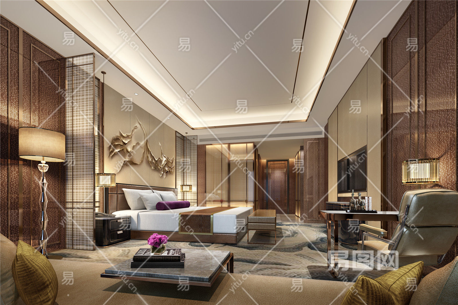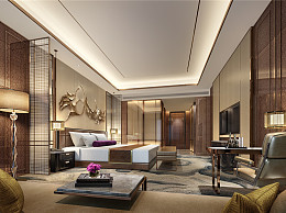 新中式酒店客房 酒店包间 酒店卫生间 酒店大床房 卧室